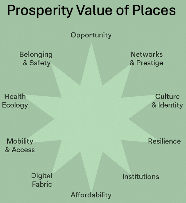 Where we are shapes who we are, and largely, who we can become. Places carry prosperity values that attract and inspire.