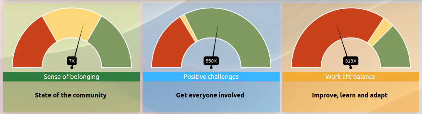 The 80 data points are translated into a simple, visual form (e.g., a social dashboard). Everyone can see which areas are “strong” or “weak”: trust, conflict resolution, information quality, autonomy, belonging. Self-diagnosis and navigation tools help individuals and groups recognize their position.
